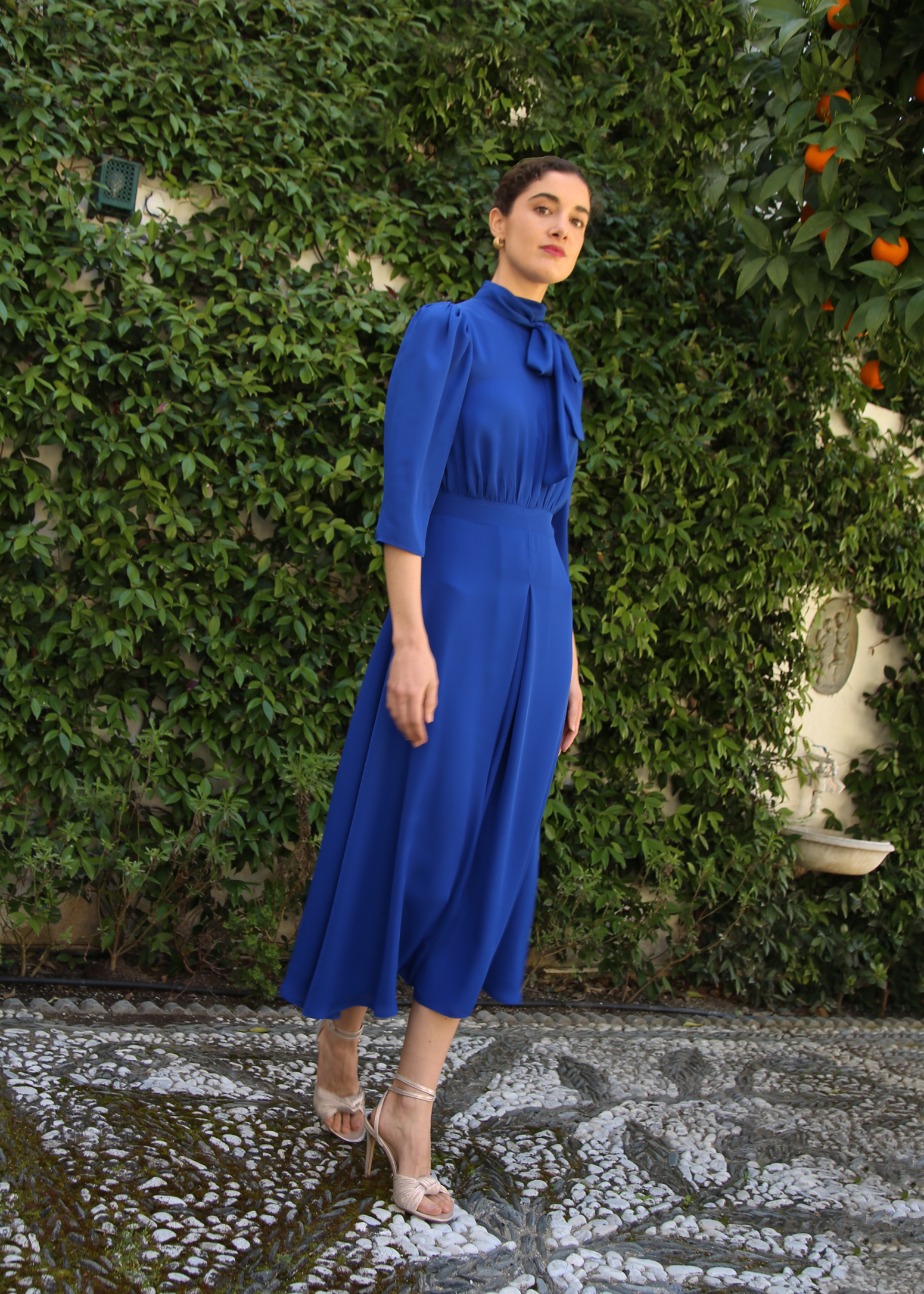 Vestido Clara azul: ¡El vestido más esperado! Clara es un vestido midi, sinónimo de elegancia y feminidad. Un vestido ideal para lucir en cualquier evento. Diseñado por AIBON y confeccionado con amor en talleres de Madrid.